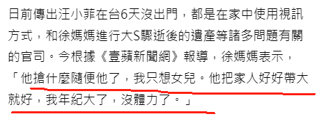 大S离世后,抚养权在法律上来说就要归还给孩子亲生父亲汪小菲,只是一开始S妈可能不太舍得,跟汪小菲连续一礼拜都在视讯研究孩子归属和遗产继承的问题。
