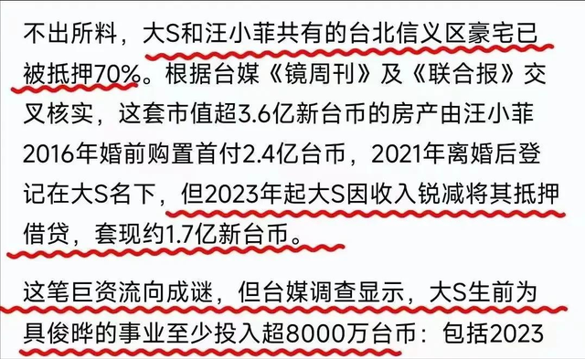而这栋豪宅的每月房贷都得还大概100万台币左右,可以说大S账户剩的钱只是“杯水车薪”。